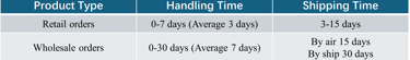 *The above dates are estimated dates. The specific stocking, delivery and transportation dates are subject to actual conditions.
